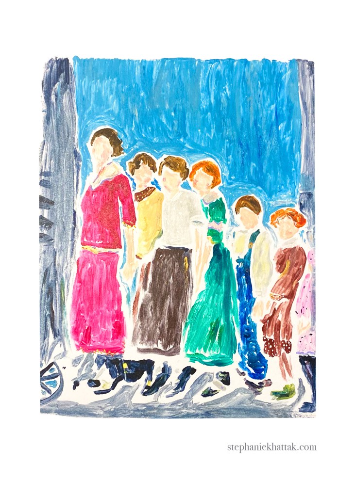 This is a family photo of my great-grandmother (in green), her siblings and her cousins. The little boy in the overalls, my great-great uncle Sherman, grew up to be a WW2 soldier killed in action in Sicily. I imagine growing up with so many sisters and girl cousins made him pretty tough and a great mediator.