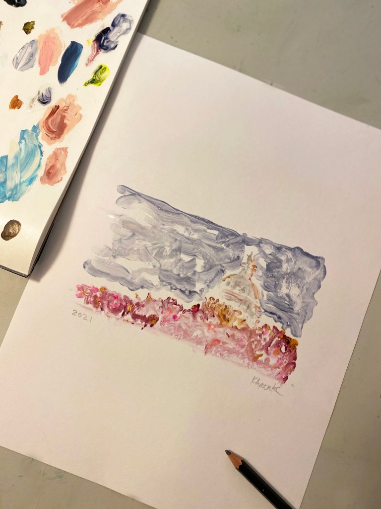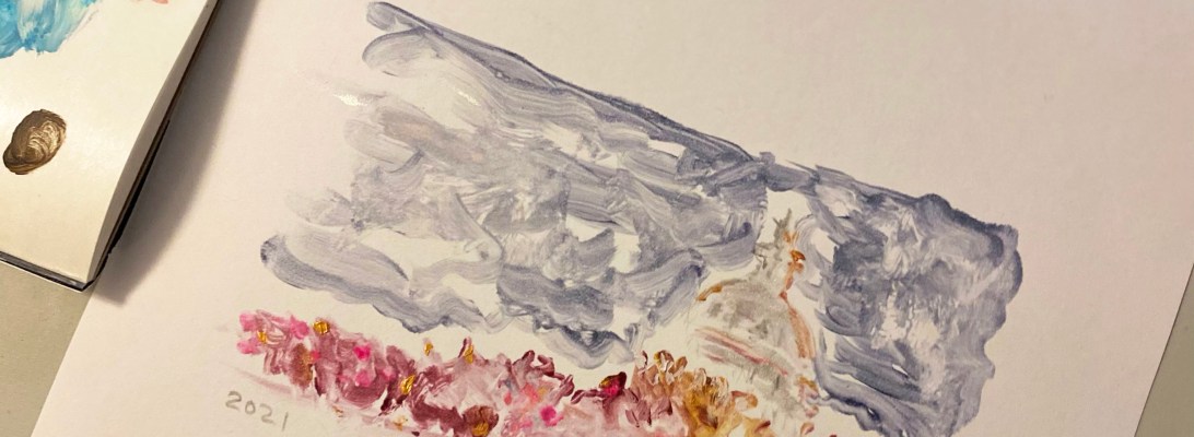 The second painting is a small (8.5X11) work of acrylic on paper. It might eventually be a scene that makes it onto a big piece. We’ll see.
