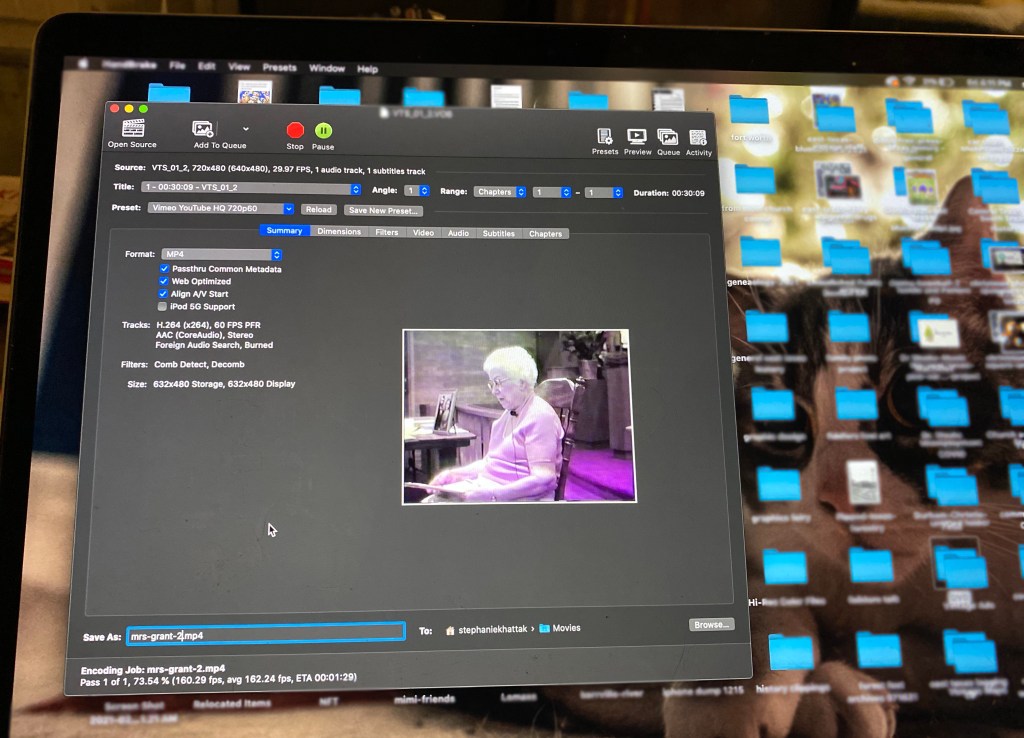 I’m not the first amateur archivist in the family. My dad, for as long as I can remember, has documented community and family life in East Texas, first with reel-to-reel recorders and Super 8 videos, then with a huge brick of a VHS camcorder (which went on every family vacation, duct-taped and cumbersome, until the late 90s, when the battery kept falling out at Graceland.) Now, like everyone else, he uses his iPhone and sometimes the video functionality on his digital camera. But he kept EVERYTHING, and a few years ago gifted me with a box of roughly 30-40 discs, each with 4-5 events captured on it. Best of all, he had long before captured the Super 8s onto the VHS, a painstaking process where he set up the screen in the living room, put on his oldies records, and videoed the screen while my mom and I tiptoed around the set-up and tried not to knock anything over or share incriminating gossip that might be picked up on audio. He later transferred those videos to DVDs as well, so they’re also in the box.