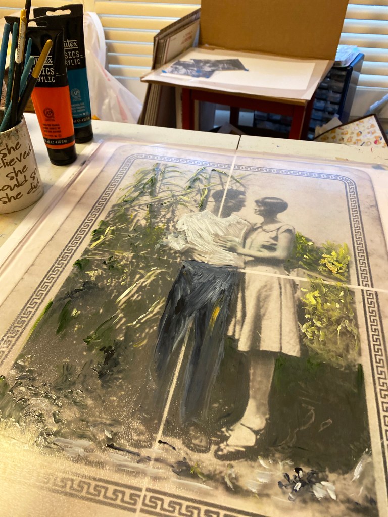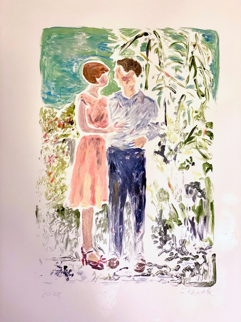 For the my first print of 2022, I chose a vintage photo of my great-grandparents in the 1920s or 30s. Doing the math now, I realize this would make it close to 100 years ago. That seems hard to believe. While Beatrice died at 68 in 1978, Charlie, aka Grandy, lived into his nineties – almost to the year 2000! So, I knew him quite well.