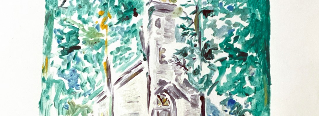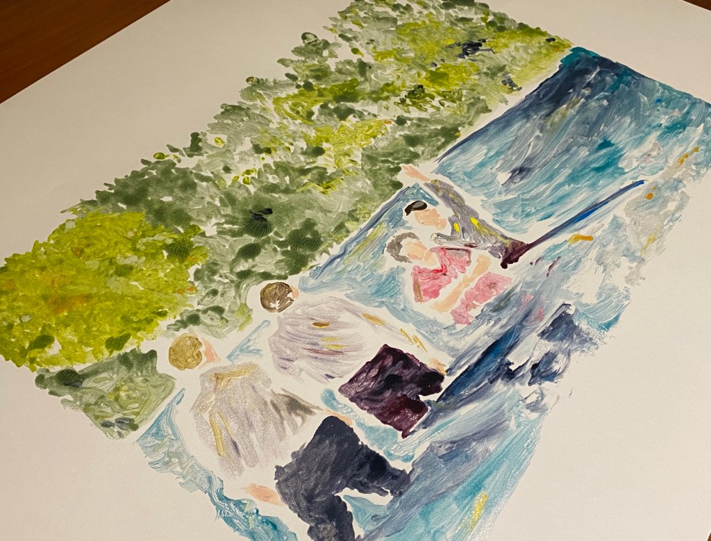 “Down to the River,” 18X24 acrylic monotype on paper by Stephanie Khattak.