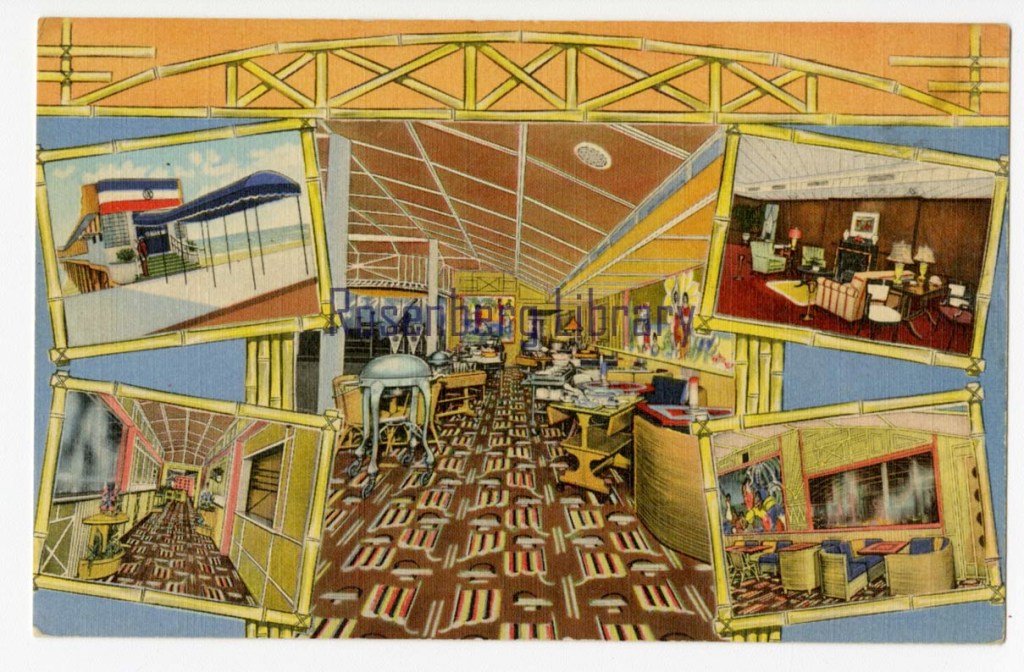 Unfortunately, time and Galveston’s famous tropical storms and hurricanes have erased The Balinese Room from its prominent spot across from Hotel Galvez, at 21st and Seawall Blvd. After being purchased and rebuilt several times over the decades, Hurricane Ike demolished it, leaving only the memories and memorabilia of this distinctive place.