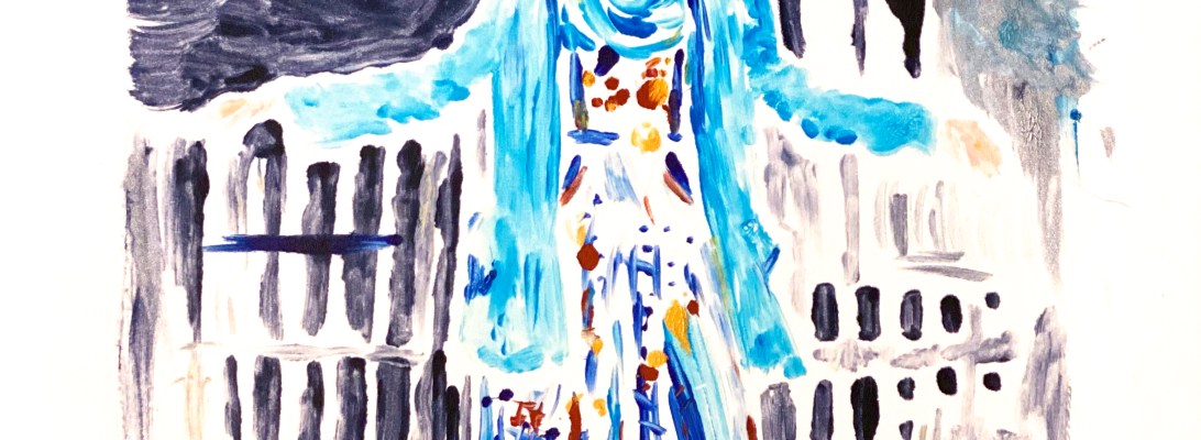 “Lizzie McBryde,” 12 x18 acrylic monotype on paper by Stephanie Khattak.